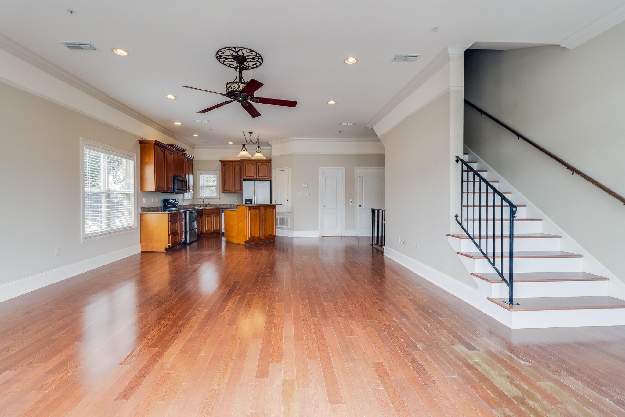 The ground floor brings you from the double garage into the foyer entry. The first floor includes the living room, kitchen/dining area, and a half bath. The bedrooms and laundry room are on the second floor. The elevator is operable to all three levels. Also, there is a pool and clubhouse on site for the tenants' use. Wood floors on first floor, ceramic tile in bathrooms & carpets in bedrooms.